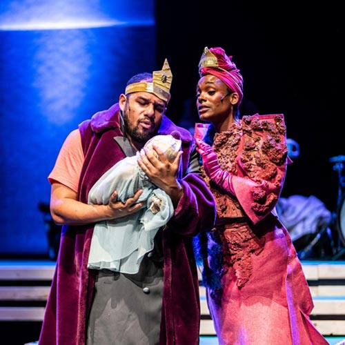 Recensie Volkskrant ★★★ In ‘Piratenkoningin’ (8+) ligt het tempo hoog en stuwt de filmische, percussierijke muziek het libretto voort.